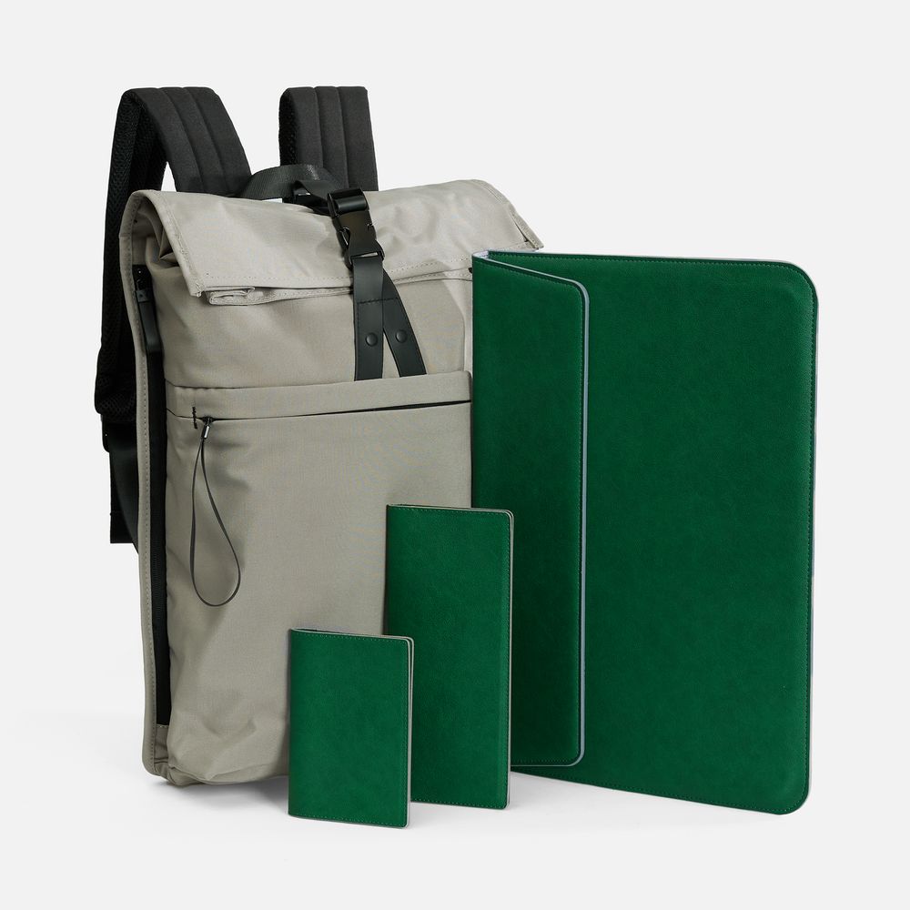- рюкзак - полиэстер, 600D; ПВХ; наушники, органайзер, брелок - пластик; бутылка - алюминий; чехол - натуральная кожа; очки - пластик, поликарбонат; покрытие софт-тач; ручка - металл, грип - пластик; покрытие софт-тач