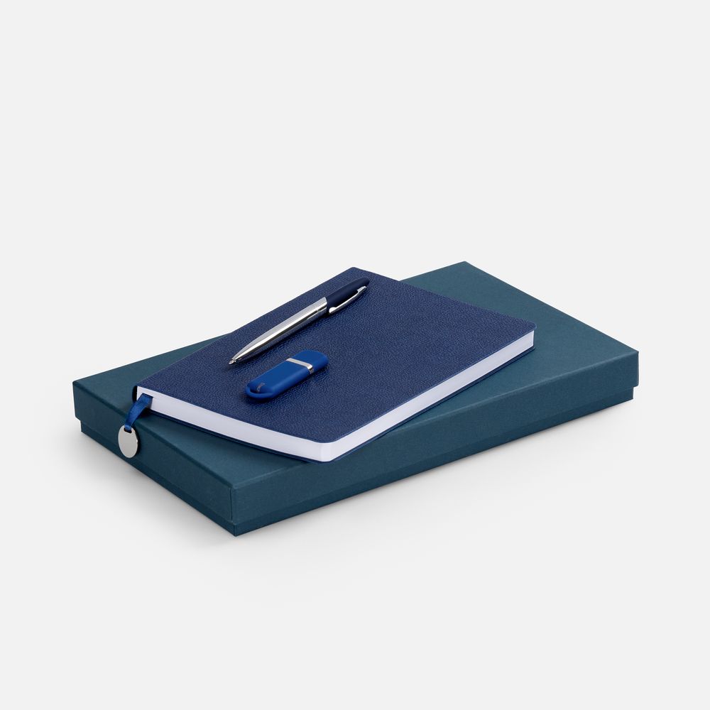 - флешка - пластик, покрытие софт-тач; ручка - металл, покрытие софт-тач; переплетный картон