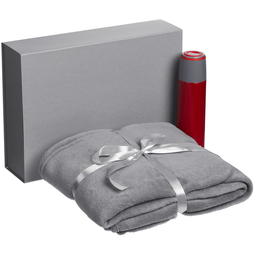 - термос - нержавеющая сталь, корпус; пластик, крышка; плед - полиэстер 100%, длинноворсный флис, 220 г/м²; коробка - микрогофрокартон