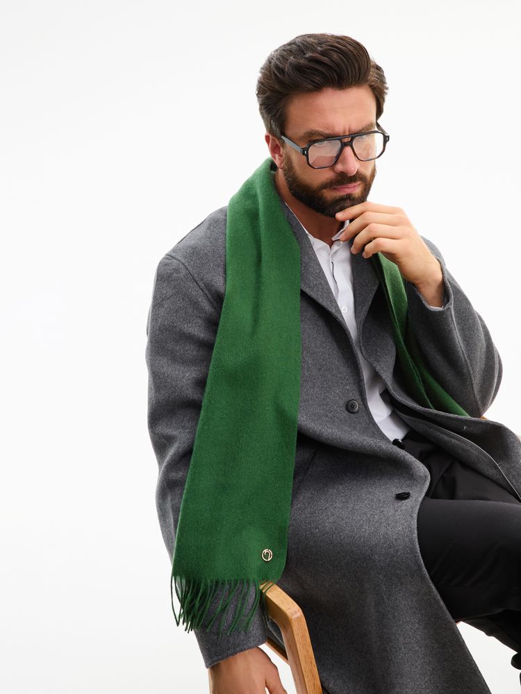 Шарф с будто бы валяной поверхностью — достаточно плотный и сдержанный, чтобы стать финальным штрихом в выверенном комплекте.