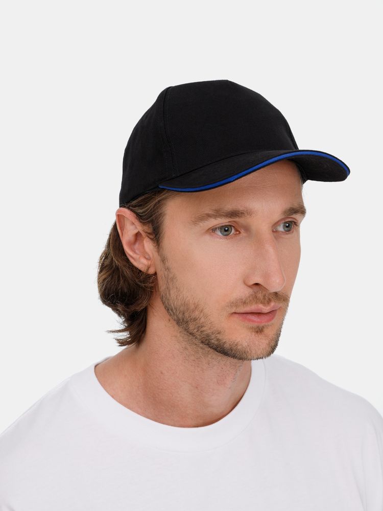 Бейсболка Long Beach, черная с ярко-синим