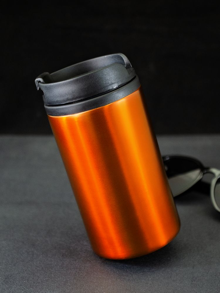 Двухслойная конструкция из пищевого пластика внутри и нержавеющей стали снаружи. Герметичная завинчивающаяся крышка с откидным клапаном для питья.