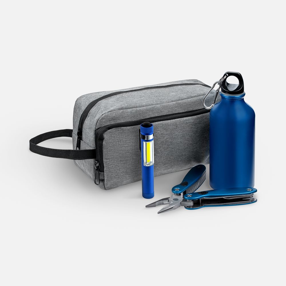 мультитул, фонарик, бутылка - алюминий; несессер - полиэстер