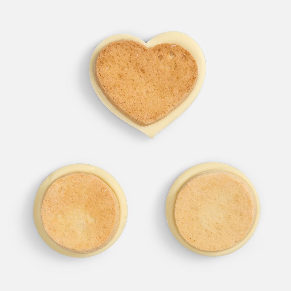 Набор из трех печений представлен в элегантной коробке с атласной лентой — готовый подарок, который говорит о вашем внимании к деталям.