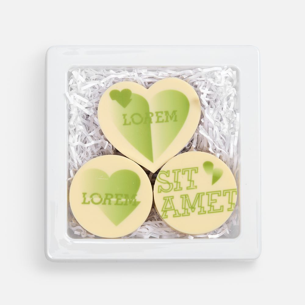 Нежное рассыпчатое печенье в глазури из белого шоколада станет изысканным угощением для особенных моментов. На шоколад безопасными пищевыми красителями наносится цветная привлекательная картинка.