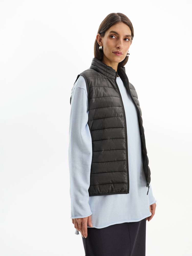 Пройма и низ изделия обработаны эластичной бейкой в цвет изделия