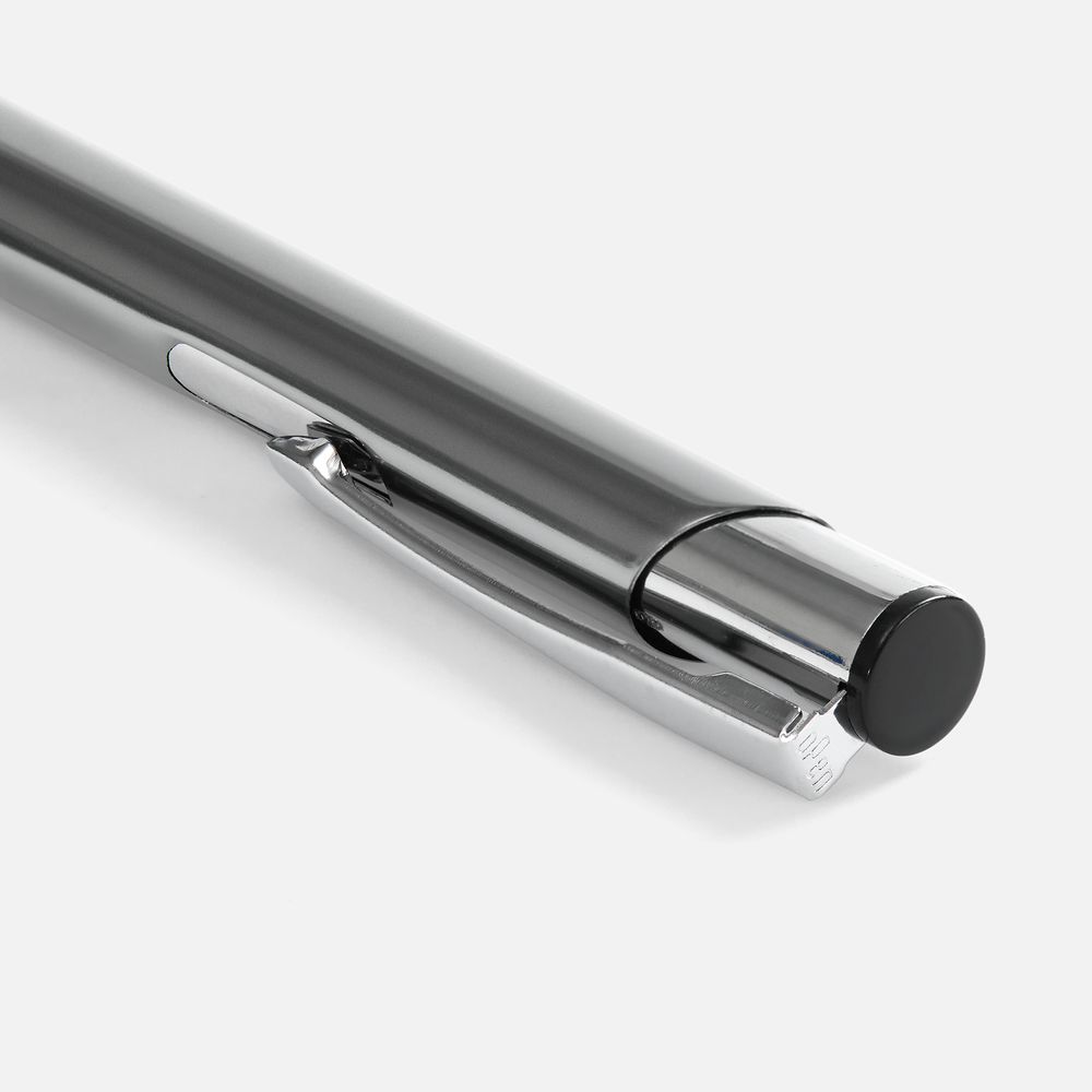 Яркая шариковая ручка с глянцевым цветным корпусом и хромированными деталями.
