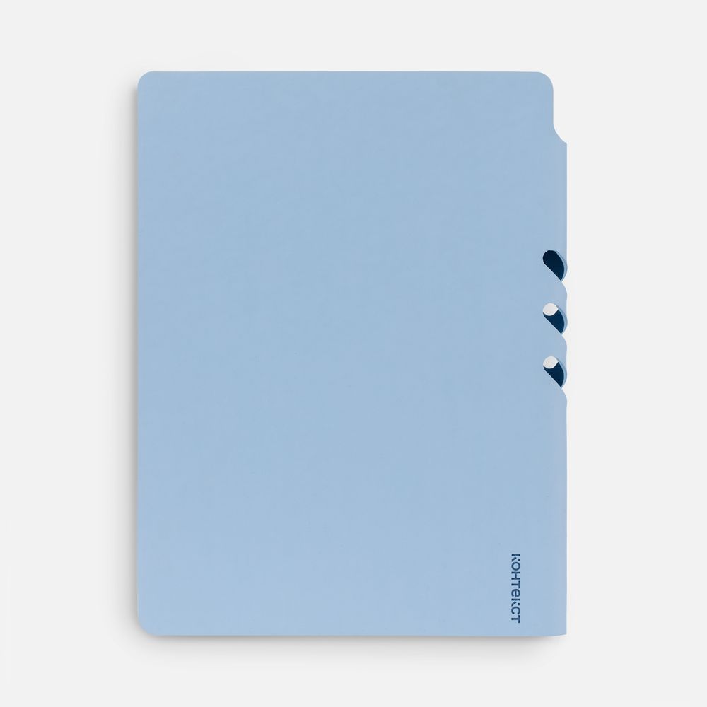 Гибкая обложка выполнена из материала Soft Touch, голубой JJ и Latte, голубой JJ (внутренняя часть обложки). Внутри корешка — специальное место для крепления ручки размером до 15х1 см.