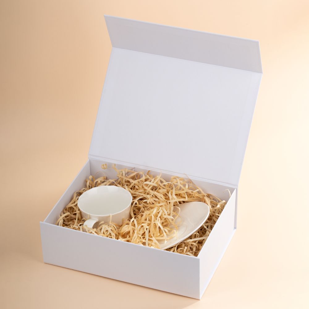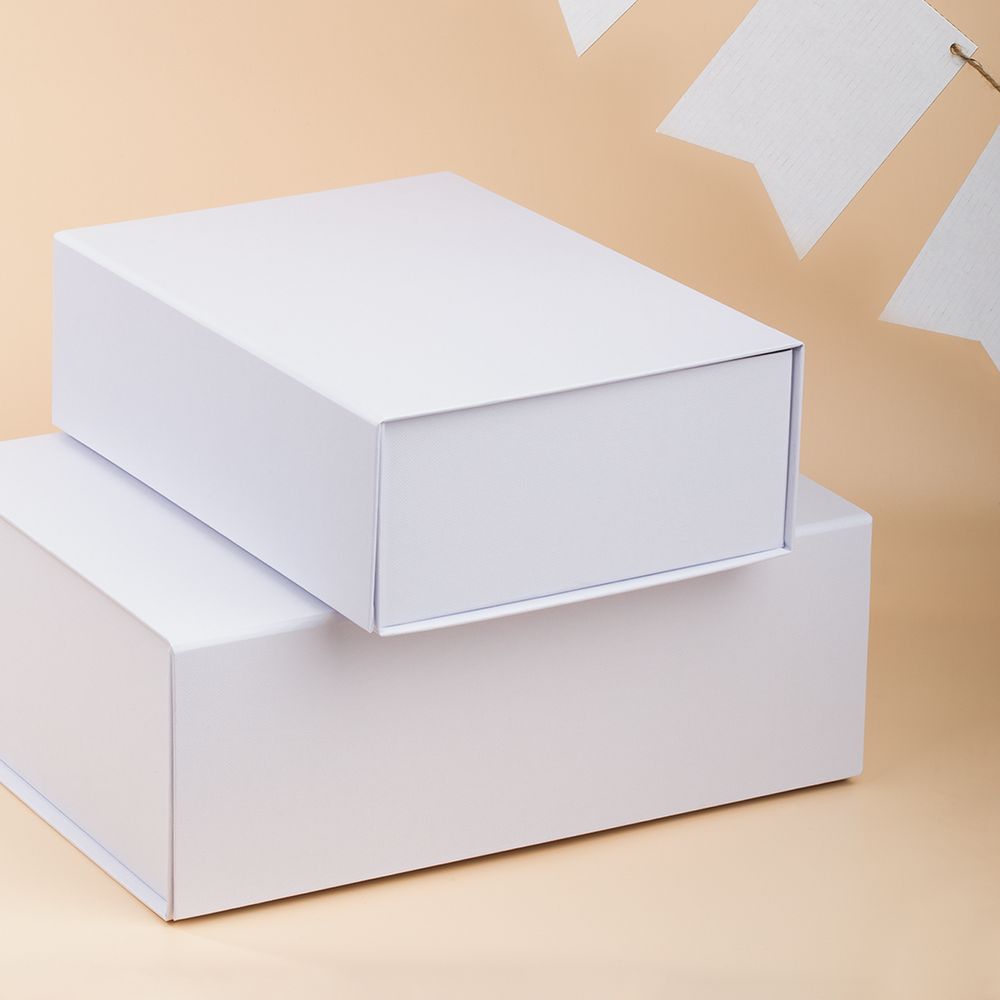 Коробка из переплетного картона, кашированного тисненой тонированной в массе бумагой, с крышкой на магните.