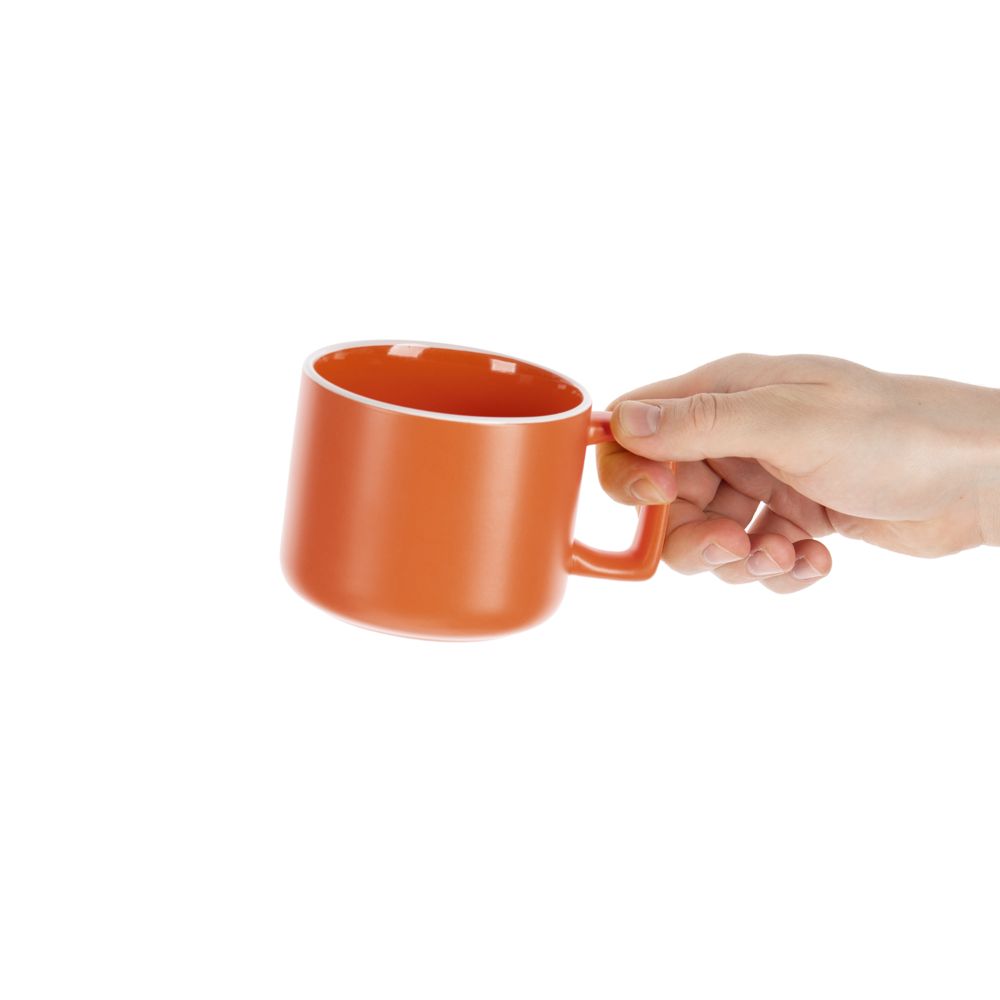 Глазурь спокойных оттенков, матовая снаружи и глянцевая внутри, графичная прямоугольная ручка — с чашкой Fusion не захочется расставаться.