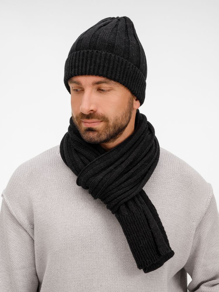 Однослойная шапка фактурной вязки с отворотом.
