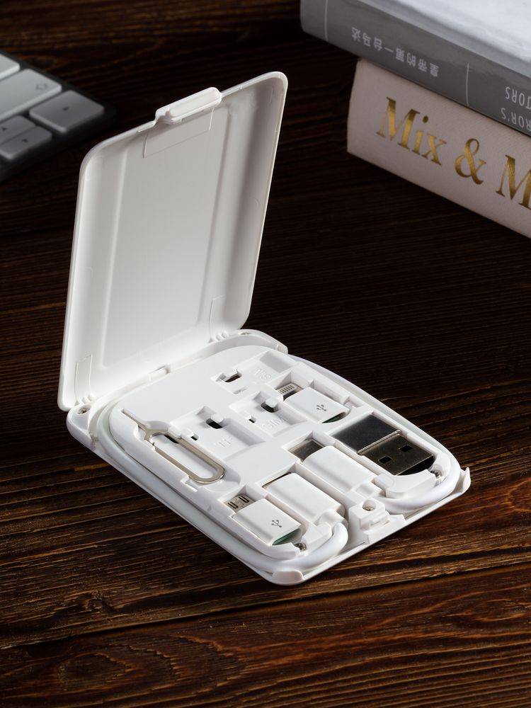 Комплект позволяет обеспечить передачу данных и зарядку для большей части современных мобильных устройств.