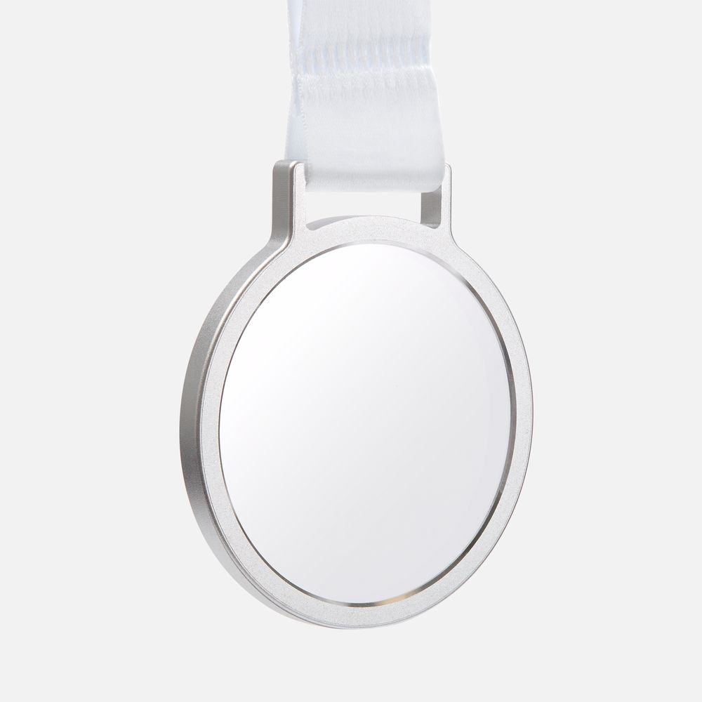 - 8,7х7,5x0,7 см; лента: 90х3 см; упаковка: 14х12х3,5 см