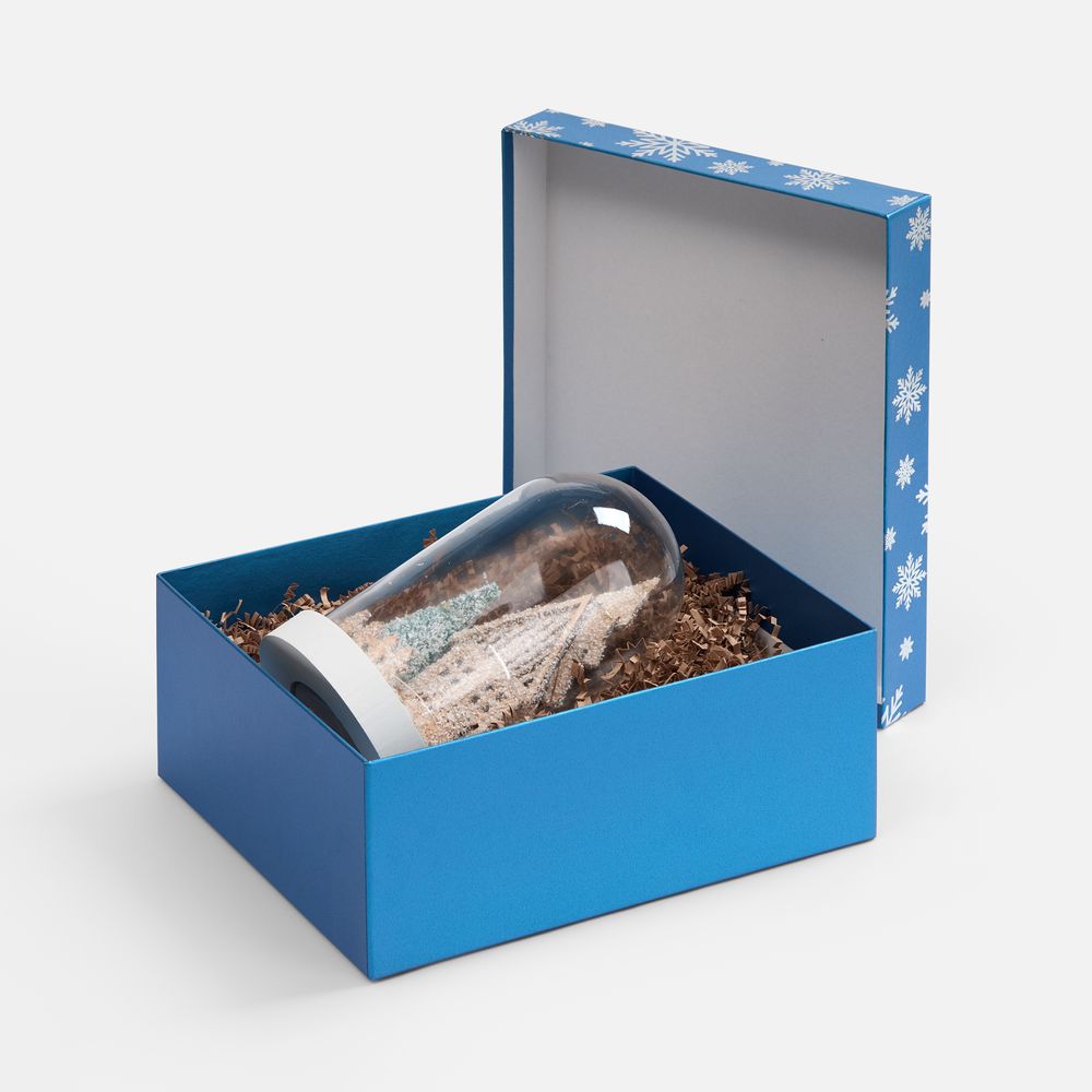 Коробка выполнена из переплетного картона толщиной 1,5 мм, кашированного бумагой TPG с тиснением серебристой фольгой.