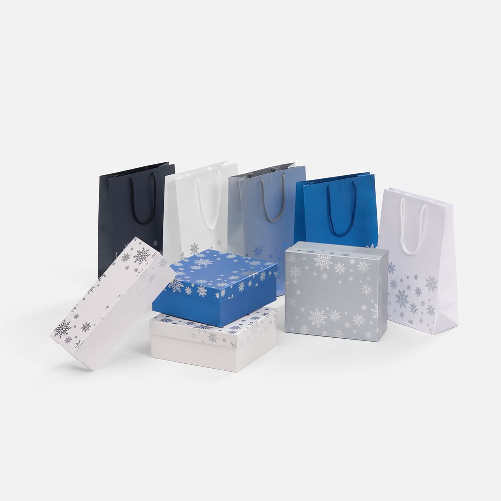 Коробка выполнена из переплетного картона,  кашированного дизайнерской бумагой Magic с тиснением серебристой фольгой, с крышкой на магните.