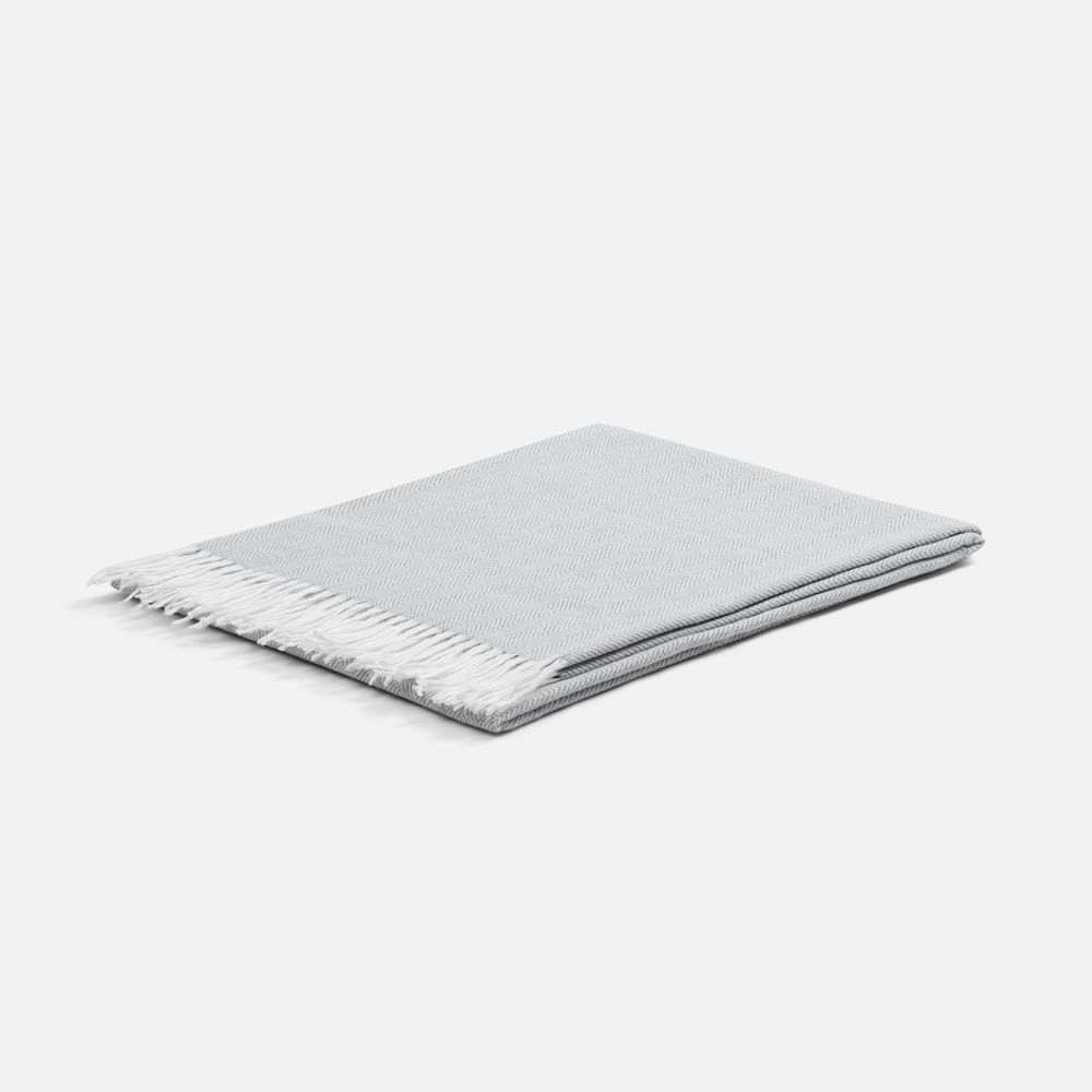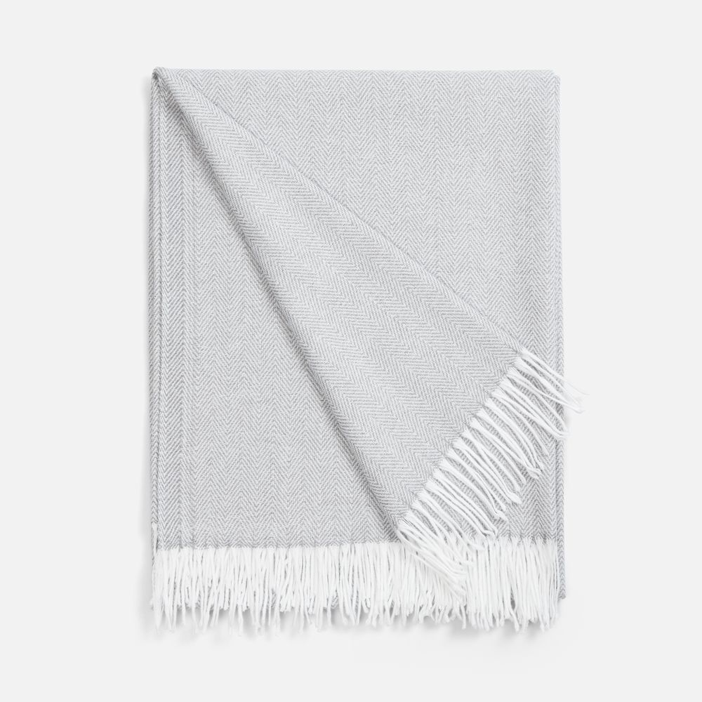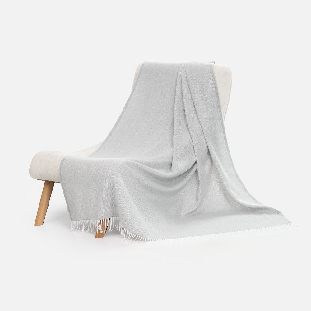 Классический рисунок «елочка» не слишком привлекает внимание, но в то же время добавляет изюминки. Смешанный состав пряжи продлевает срок службы и существенно облегчает уход за пледом.