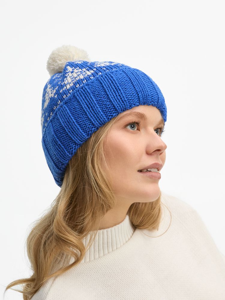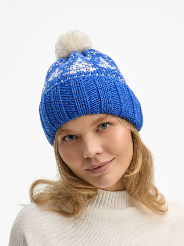 Шапка с отворотом, связанном резинкой, и контрастным пушистым помпоном — зимняя классика прямиком из детства. В ней захочется насладиться всеми радостями сезона: отправиться на каток, поиграть в снежки или с ветерком прокатиться на лыжах.