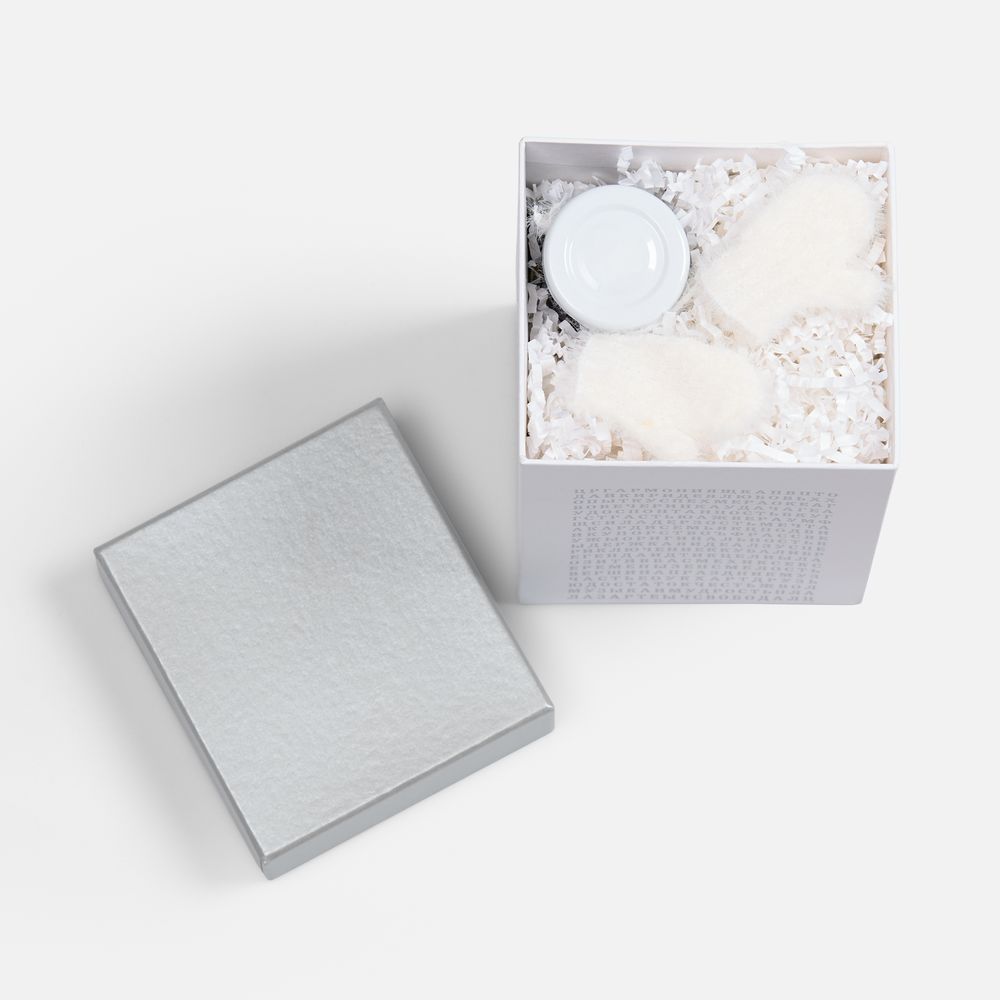 Набор упакован в картонную коробку белого-серебристого цвета.