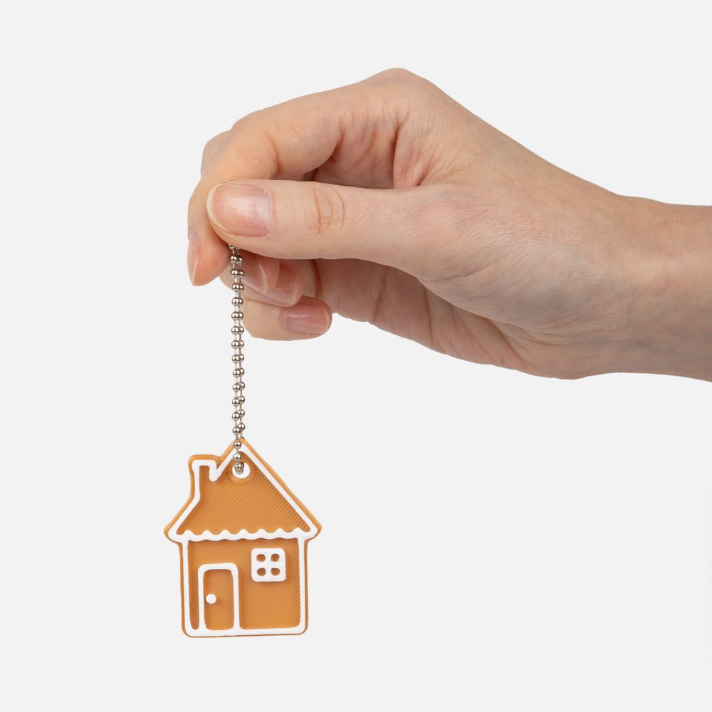 Мини-подвеска на фото изготовлена из PLA-пластика двух цветов: телесный 721С и белый.
