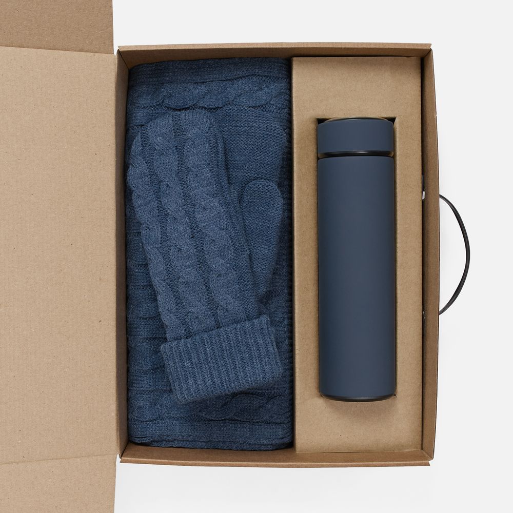 - шарф, варежки - акрил 100%; термос - нержавеющая сталь, 304; покрытие софт-тач; коробка - микрогофрокартон