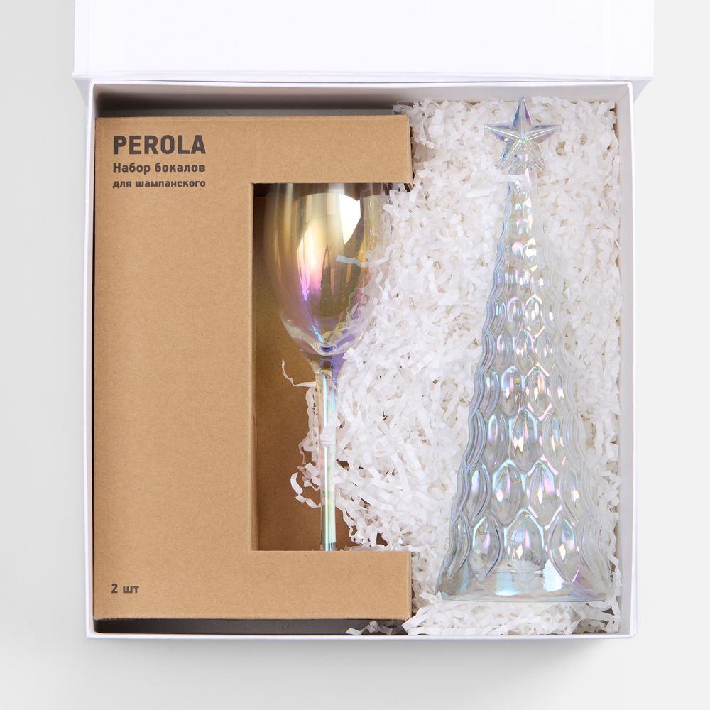 Секрет прост: это особенное перламутровое напыление бокалов и стеклянной елочки-светильника, а еще серебристое голографическое тиснение на самой упаковке и ежедневнике с главным — и всегда актуальным — пожеланием. В такой компании блестящие идеи, без сомнения, будут посещать намного чаще, чем обычно, а весь год будет окрашен в яркие тона, искрящиеся радостью!