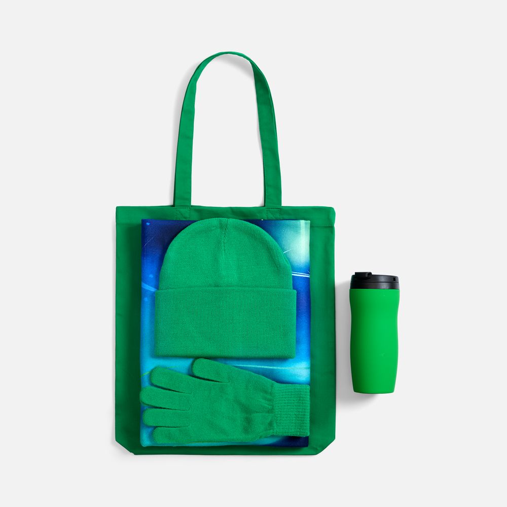 Набор «Северное сиятельство» — это выражение заботы и нетривиальный комплимент в одном шопере! В нем тонко переплетены дух современного города и очарование северной сказки. Его элементы лаконичны и функциональны, а главная изюминка — живописный плед с изображением aurora borealis — добавляет ноту настоящего чуда.