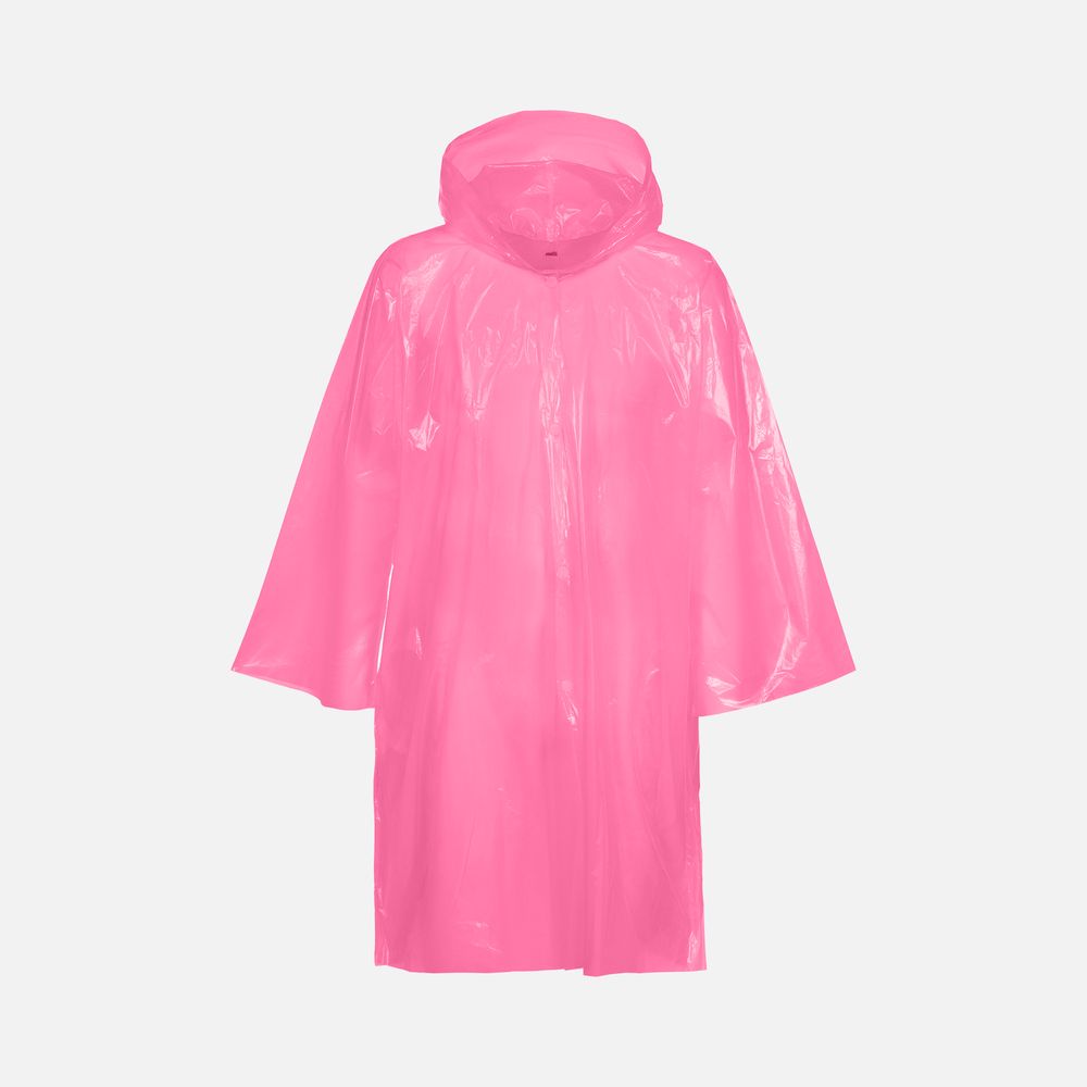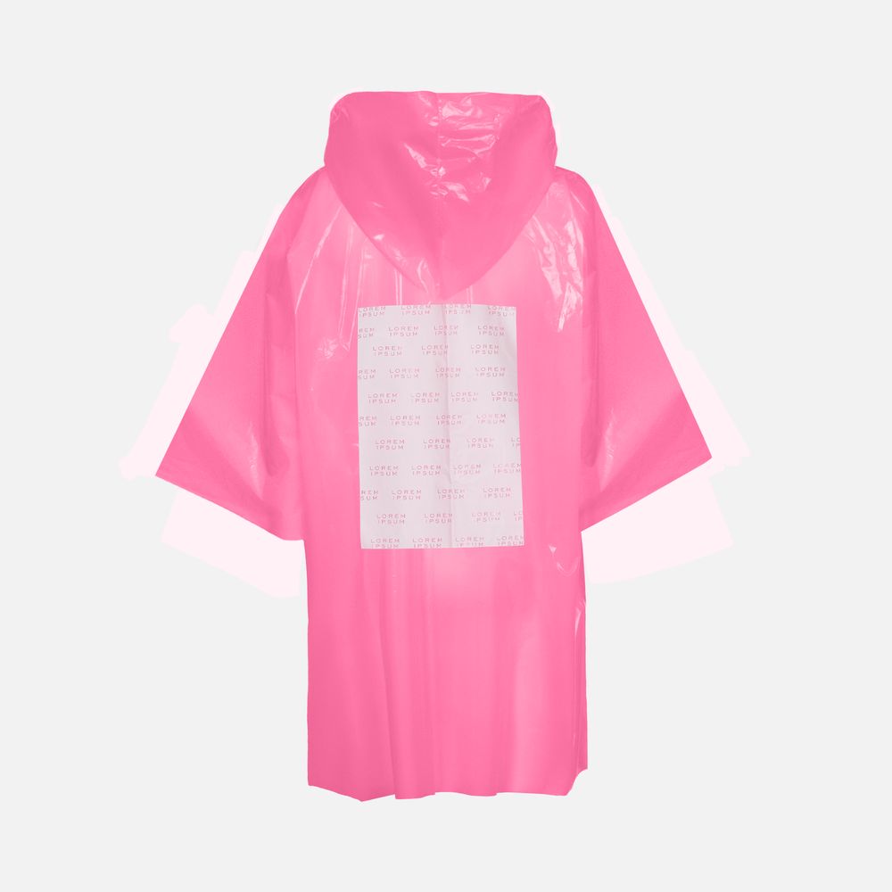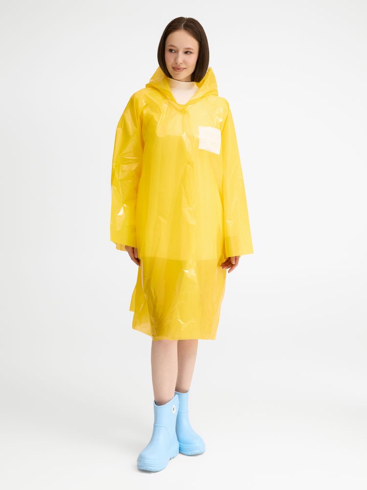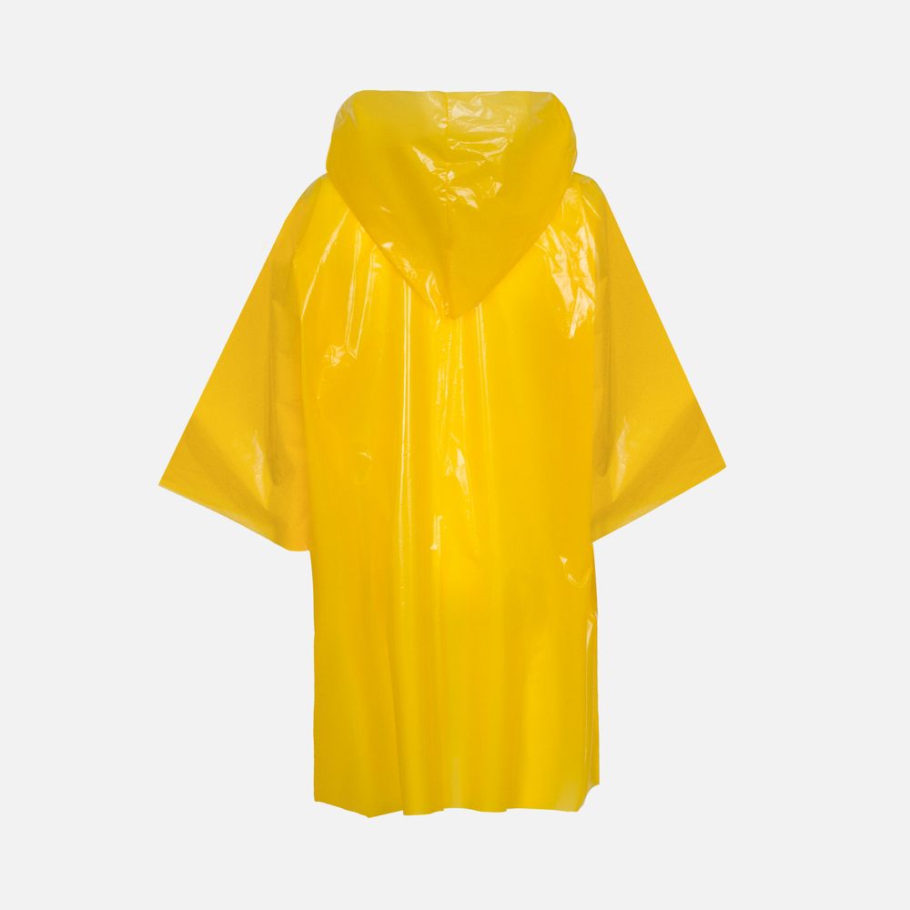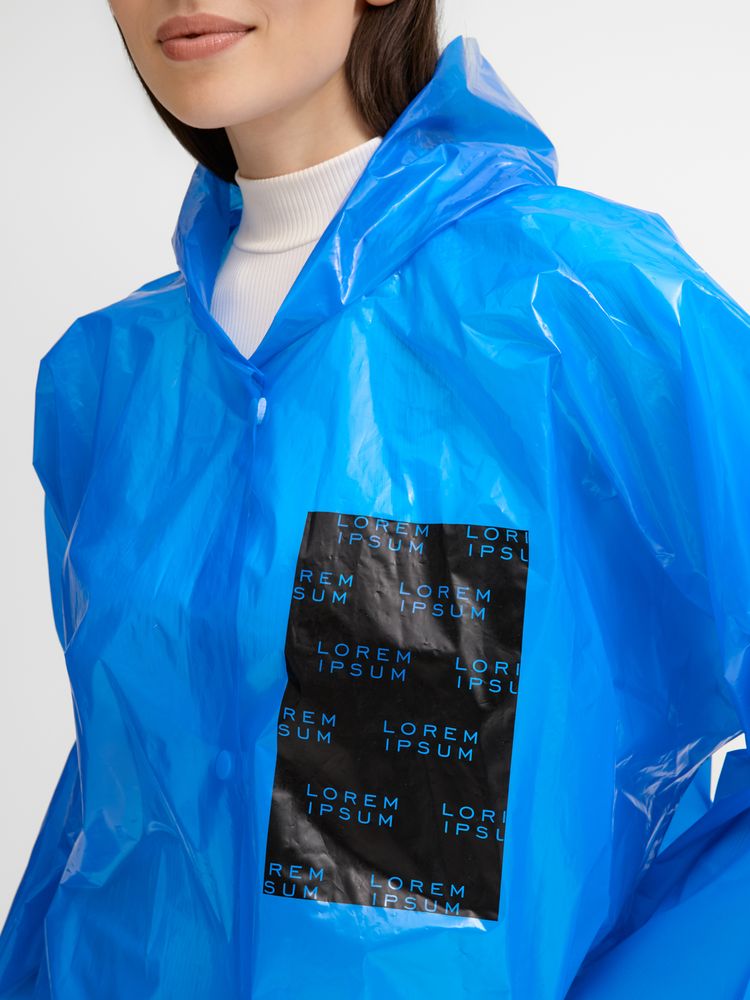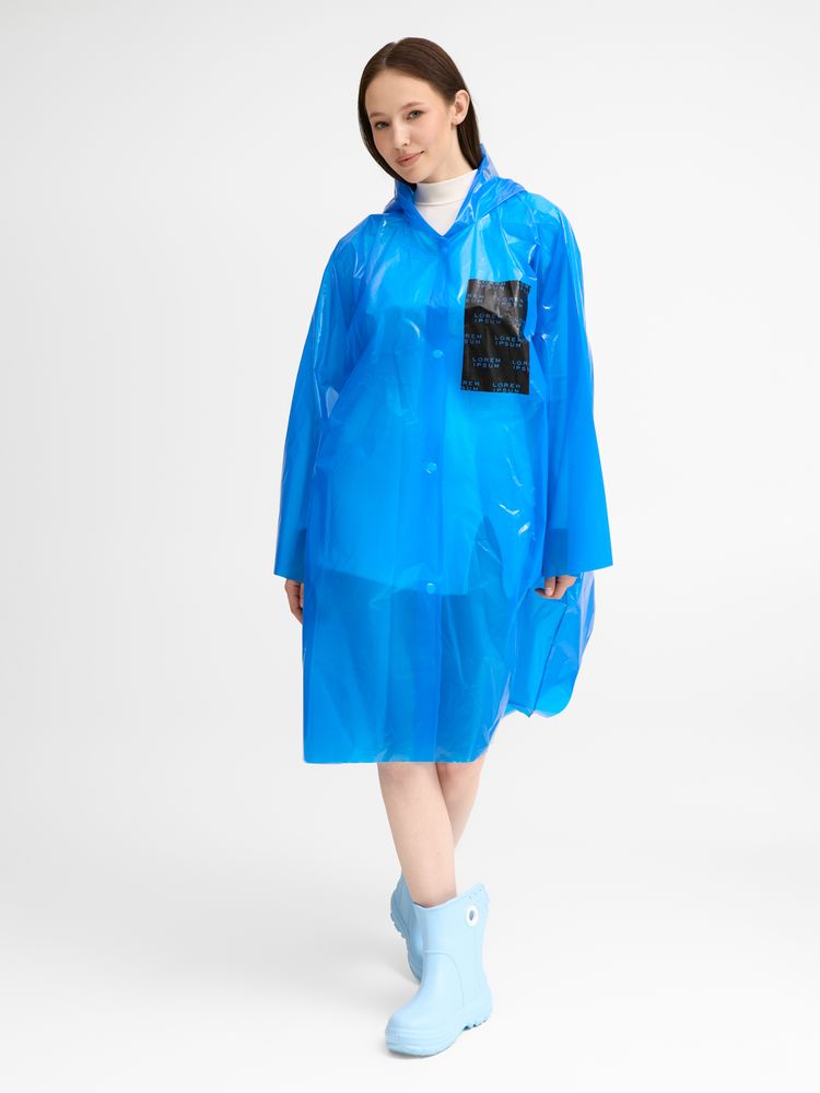 Интересный цвет и печать в один цвет на самом изделии позволят создать не только запоминающийся дизайн, но и отличный маркетинговый инструмент привлечения внимания покупателей.Дождевик-плащ с капюшоном и длинными рукавами из полиэтилена высокого давления (ПВД).