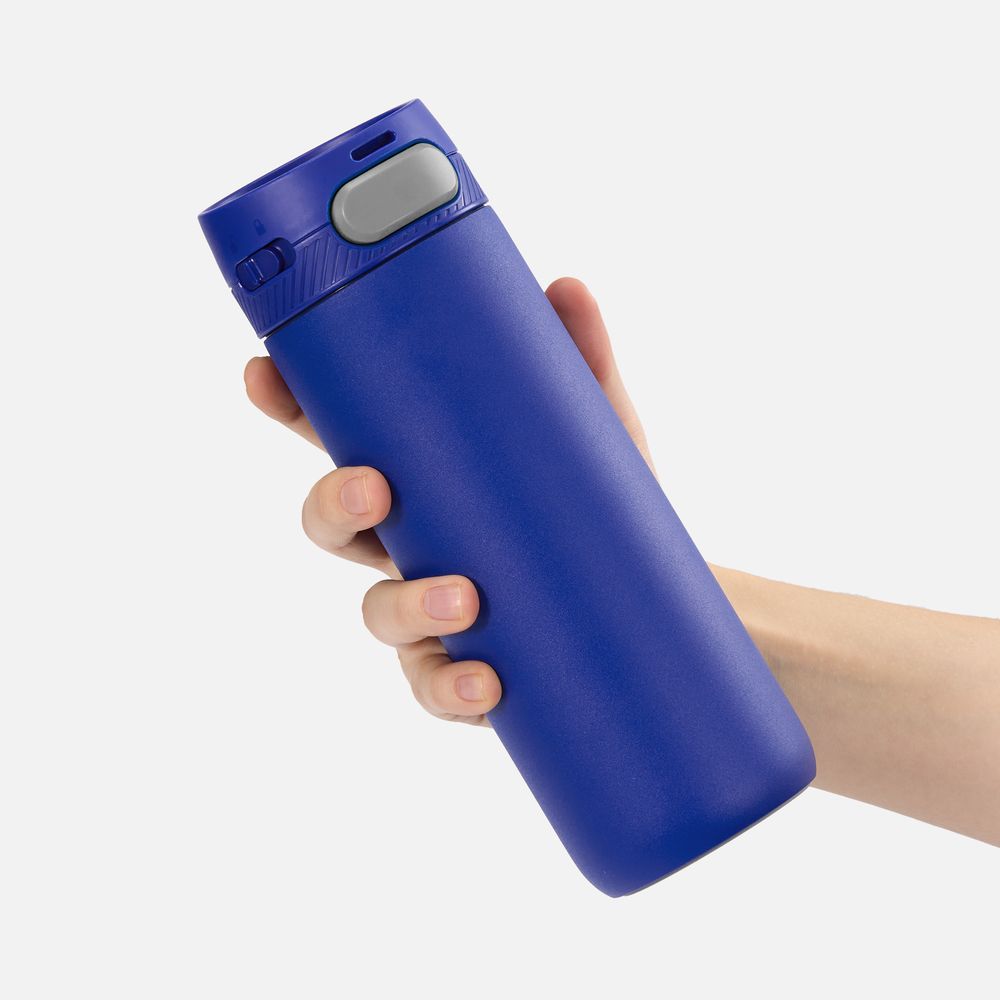 Термостакан X1 с цветной кнопкой, синий с серым