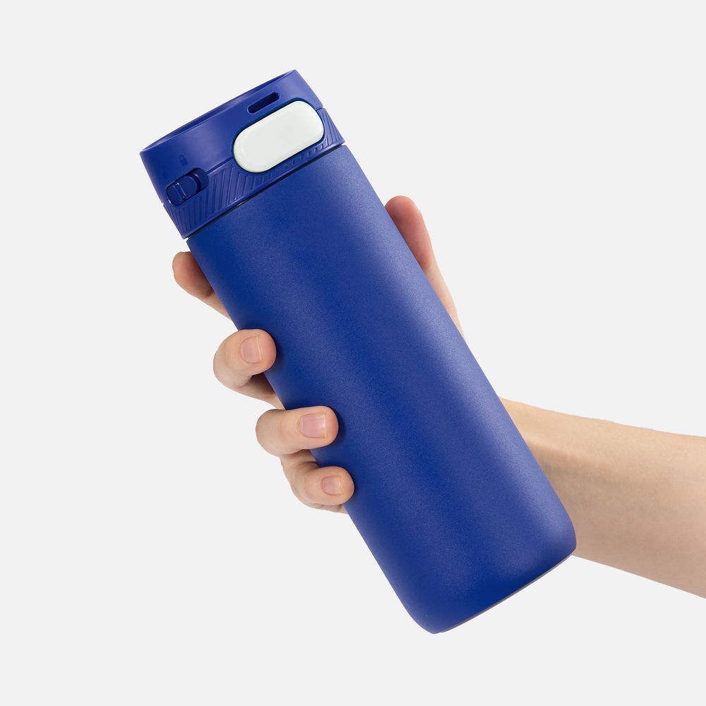 Термостакан X1 с цветной кнопкой, синий с белым