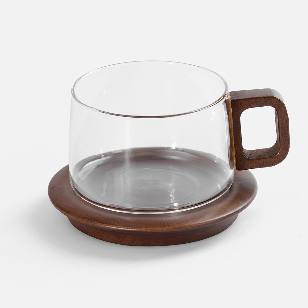 - чашка - боросиликатное стекло; ручка, блюдце - дерево, орех