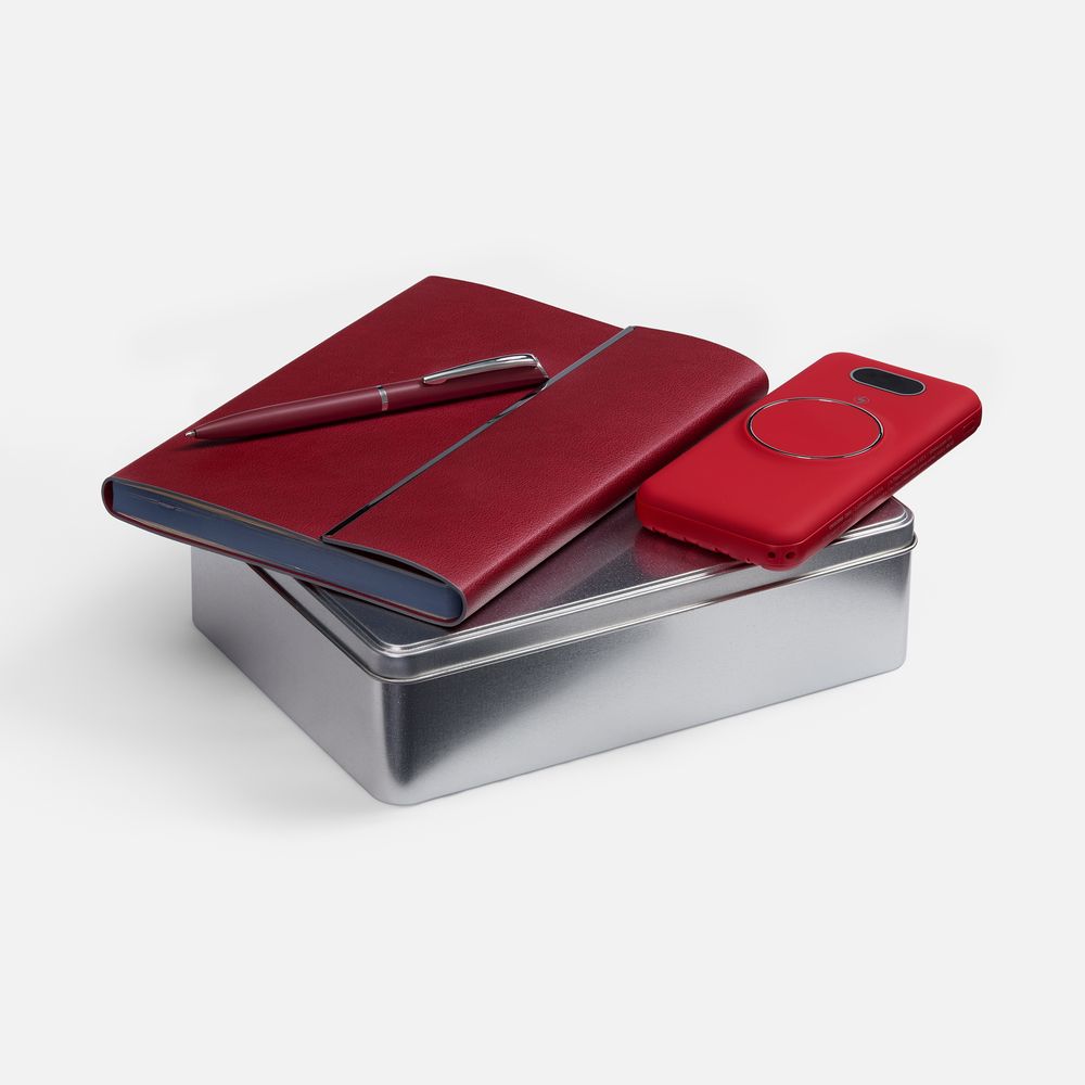 - наушники - пластик; термостакан - нержавеющая сталь, матовое покрытие; крышка - пластик, силикон; коробка - переплетный картон, бумага Magic; антистресс - вспененный полиуретан