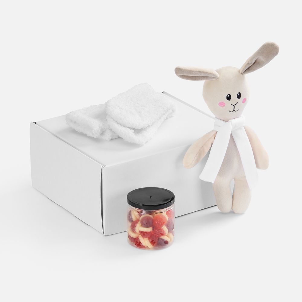 - коробка - микрогофрокартон; носки - полиэстер 100%; игрушка - велюр, полиэстер; упаковка мармелада - пластик