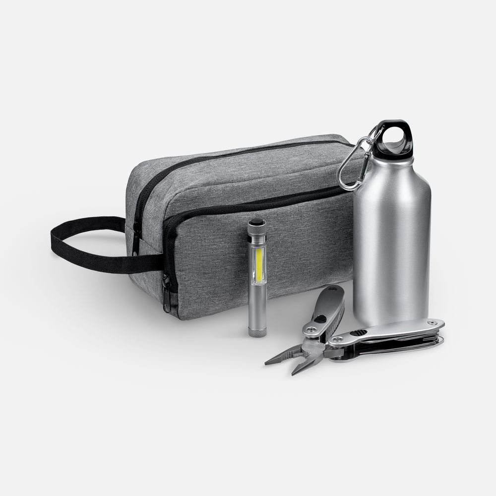 - термостакан - нержавеющая сталь, пластик; зонт - эпонж, металл, пластик; сумка - хлопок 100%