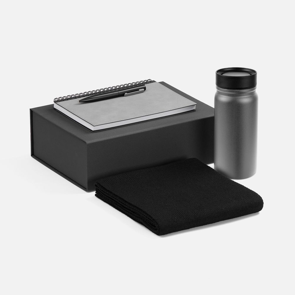 - шарф, варежки - акрил 100%; термос - нержавеющая сталь, 304; покрытие софт-тач; коробка - микрогофрокартон