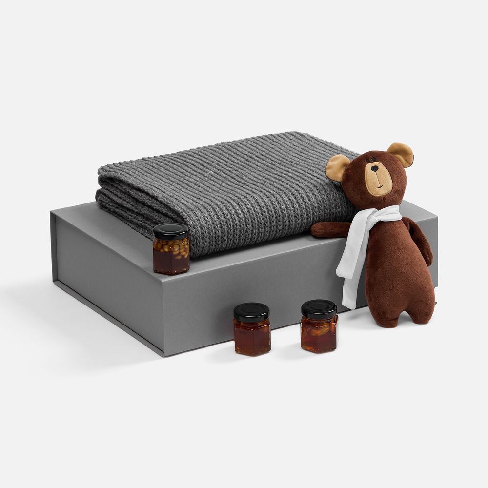 - шарф - акрил 100%; игрушка - велюр; набивка, шарфик - полиэстер 100%; баночки для меда - стекло; коробка - переплетный картон, бумага Malmero