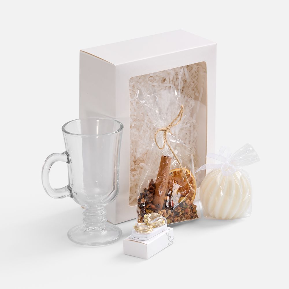 - плед - акрил 100%, плотность 430 г/м²; подсвечник - стекло, крышка - пластик; свеча - парафин, соевый воск, парфюмерная композиция; коробка - переплетный картон, бумага Classy Covers