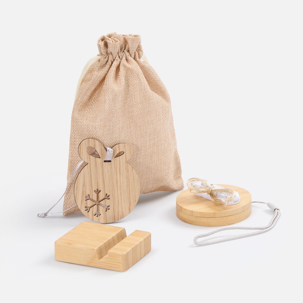 - подставка - бамбук; плед - акрил 100%; штопор - нержавеющая сталь, прорезиненный пластик