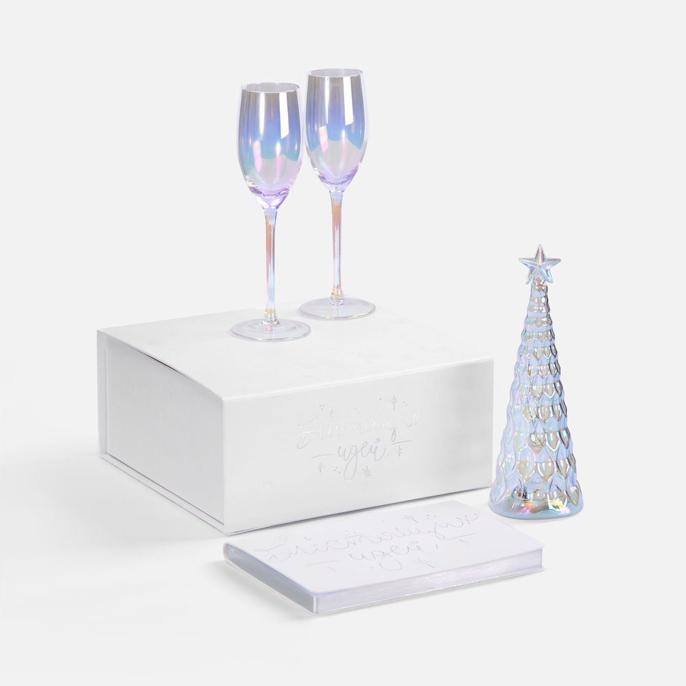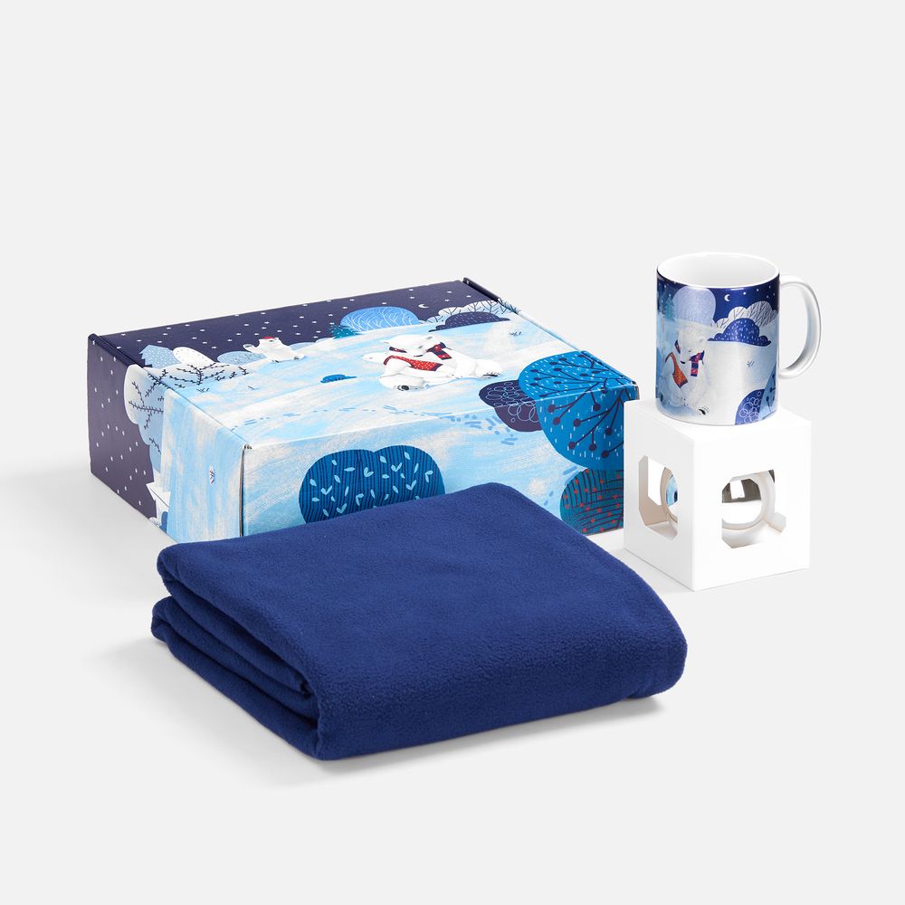 - кружка, елочный шар - стекло; плед - полиэстер 100%; коробка - дерево, фанера
