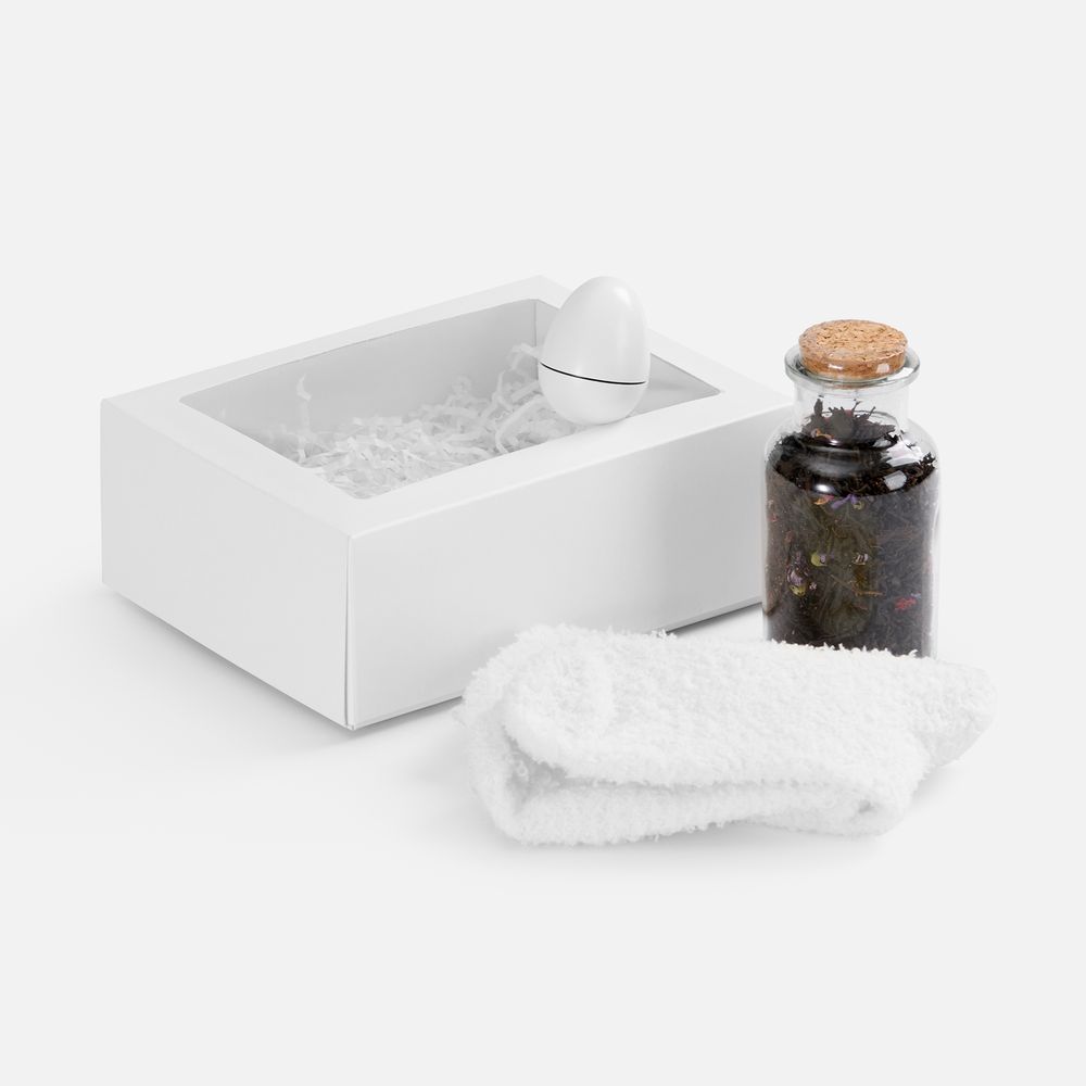 - коробка - картон; упаковка чая - стекло; бальзам - пластик; носки - полиэстер 100%