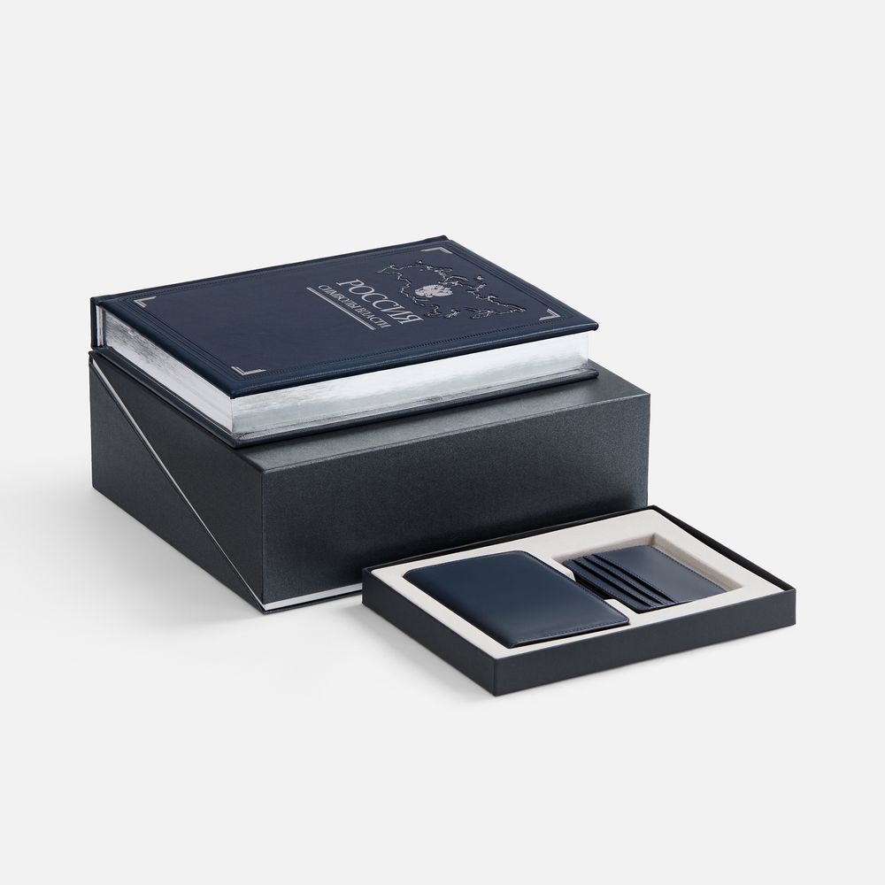 - книга, обложка на паспорт, чехол - натуральная кожа; коробки - переплетный картон, коробка Artikus - переплетный картон, бумага Majestic