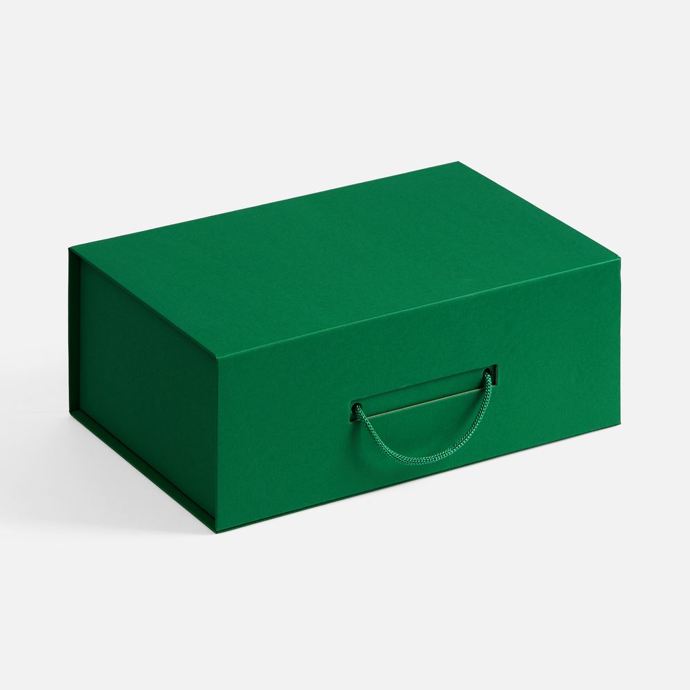 Коробка выполнена из переплетного картона, кашированного дизайнерской бумагой Malmero «Благородный синий», с крышкой на магните.