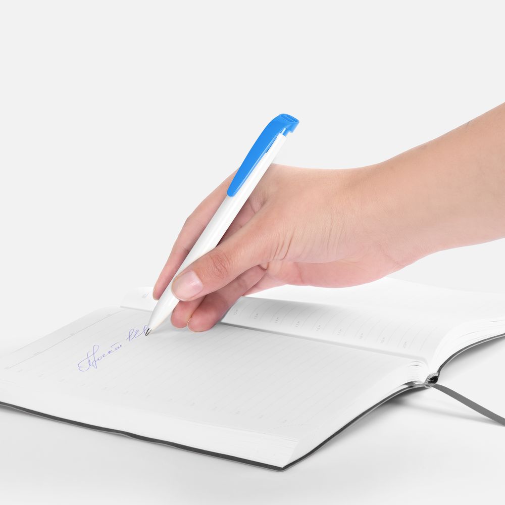 Корпоративная одежда с логотипом Корпоративные подарки на Новый год Спортивные товары с логотипом Съедобные корпоративные подарки с логотипом Элементы брендирования и кастомизации Ручка шариковая Favorite, белая с голубым