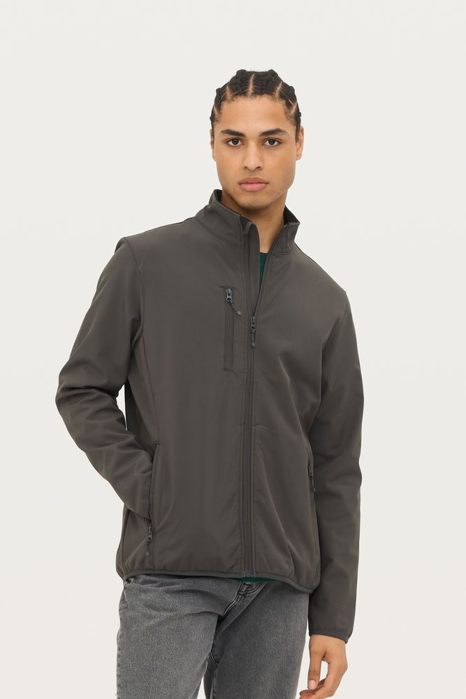 Мужская водонепроницаемая и ветрозащитная куртка на молнии из трехслойного софтшелла с флисовой изнанкой. Выполнена из переработанного полиэстера.