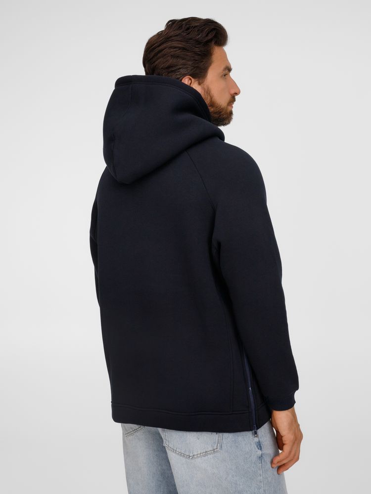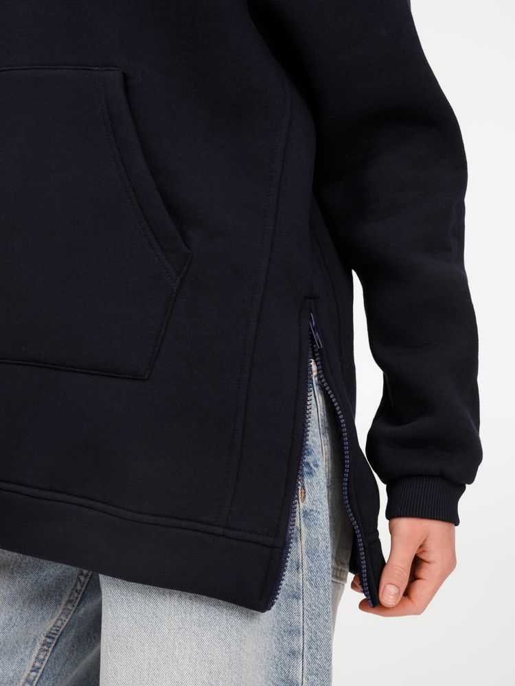 Худи унисекс удлиненного силуэта с молниями в боковых швах.