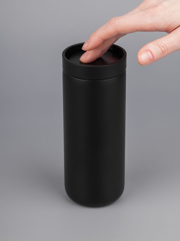 • Герметичная завинчивающаяся крышка с силиконовым уплотнителем и питьевой системой с клапаном — технология 360° позволяет одним нажатием открывать кружку и пить с любой стороны