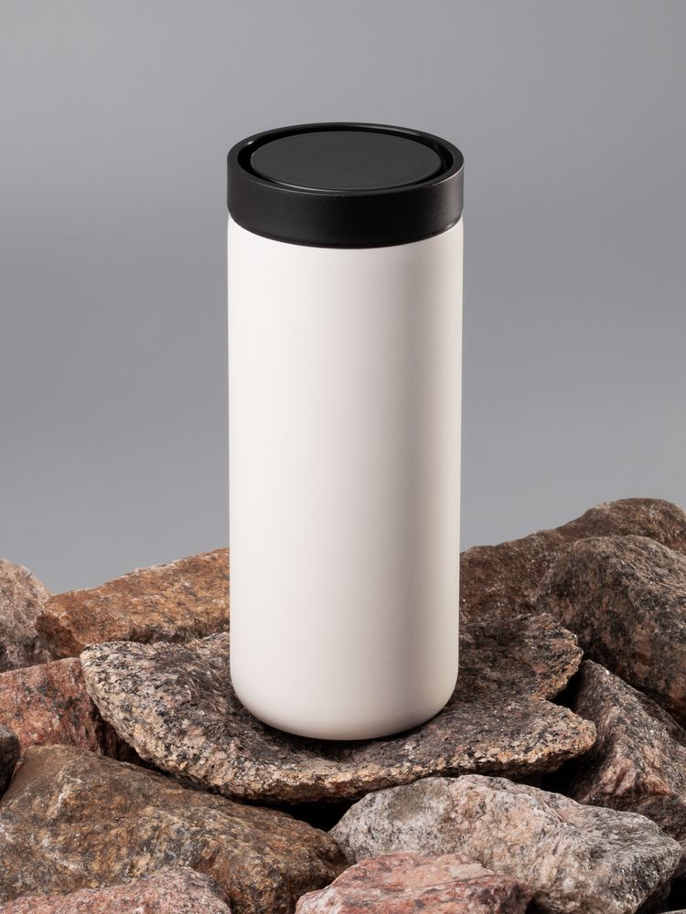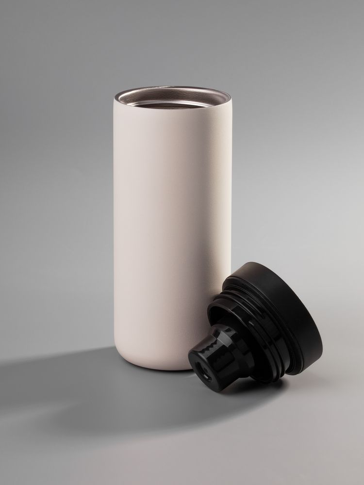 Лаконичный термостакан с удобным клапаном, который открывается и закрывается одним нажатием, — и пить можно с любой стороны.
