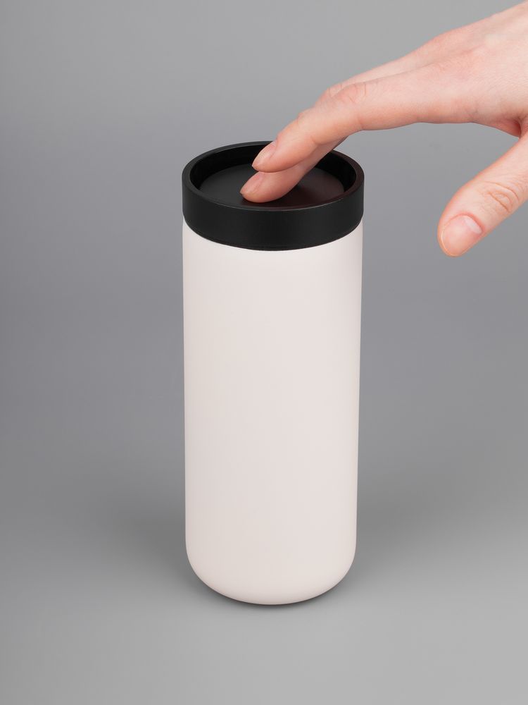 • Герметичная завинчивающаяся крышка с силиконовым уплотнителем и питьевой системой с клапаном — технология 360° позволяет одним нажатием открывать кружку и пить с любой стороны