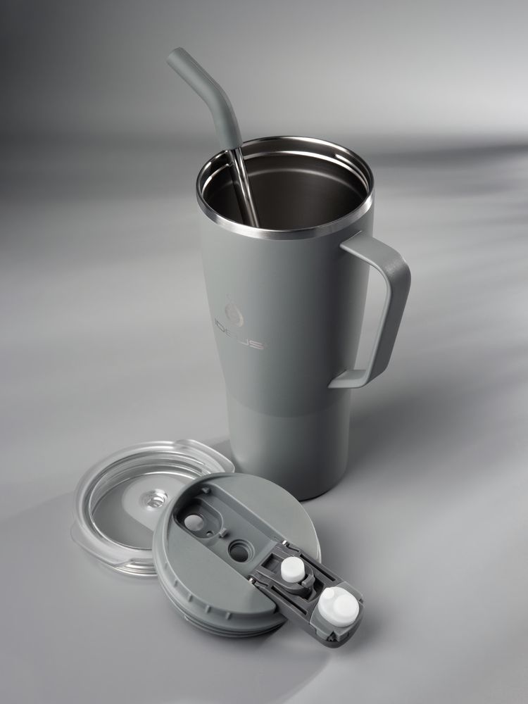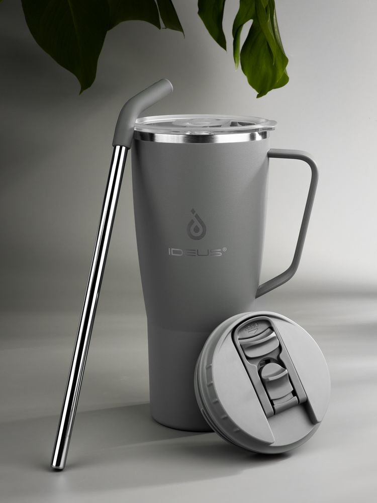 • 2 крышки в комплекте: одна на 100% герметичная с механизмом блокировки отверстия для питья, вторая — с отверстием для трубочки