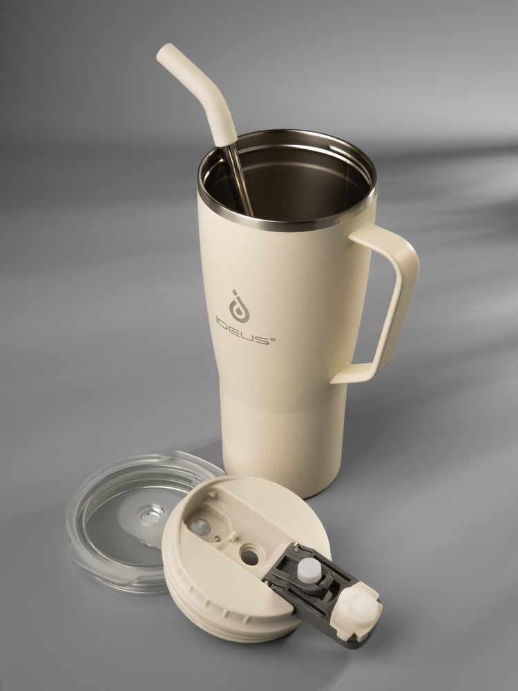 • 2 крышки в комплекте: одна на 100% герметичная с механизмом блокировки отверстия для питья, вторая — с отверстием для трубочки