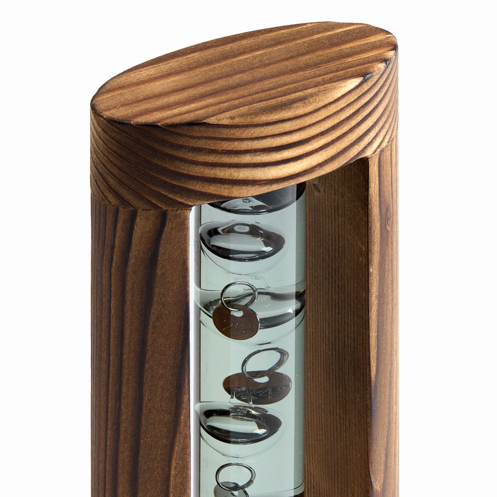 Любопытный термометр, изобретенный великим Галилео Галилеем, который первым обнаружил, что плотность жидкости увеличивается при снижении температуры и уменьшается при ее повышении.